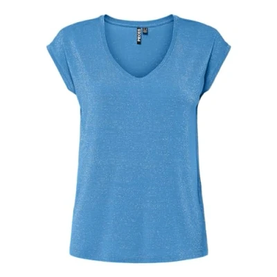 Pieces Women's Pcbillo Tee Lurex Stripes Noos Bc, Azure Blue, Large