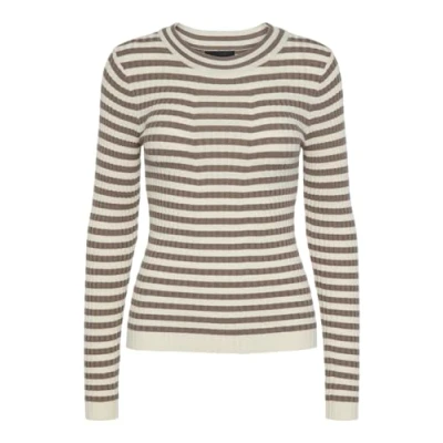 PIECES Women's Pccrista LS O Neck Knit Noos Bc Sweater, Fossil 1, L