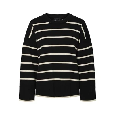 PIECES Women's Pcmathilde LS O Neck Knit Noos Bc Jumper, Taupe Grey/Stripes: Black, XS