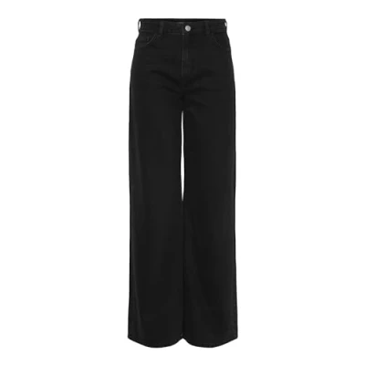 PIECES Women's Pcselma Hw Wide Jeans Bl102 Noos Bc, Black Denim, 28W x 30L