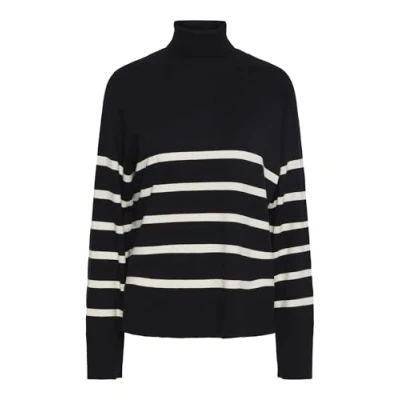 PIECES Women's Pcsia Ls Rollneck Knit Noos Bc Jumper, Black/Stripes: White, S