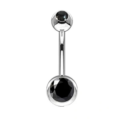PiercedOff 316L Surgical Steel Belly Bar with Black CZ Gem Balls Thickness 14GA (1.6mm) / Length 11mm Ball Sizes 5mm Top and 8mm Bottom