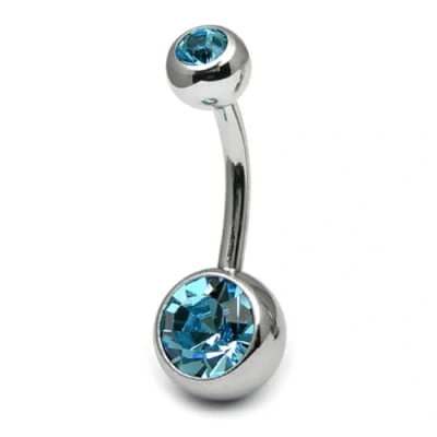 These belly bars are 1.6mm (14ga) thick and this is the standard thickness for most belly piercings The belly bar is 10mm long and is the standard length for belly piercings The top ball on this belly bar is 5mm in size, has a small cz gem in it and is externally threaded. The bottom ball is 8mm, also has a gem in it but does not unscrew This ensures that the bottom ball is always facing in the correct direction when worn. This is the standard size of of most belly bars The belly bars are manufactured from surgical stainless steel so will not rust, corrode or stain. This jewellery is best for healed piercings. Surgical Stainless Steel contains traces of nickel so may not be suitable for those with a nickel allergies. These belly bars are available in different lenghts and sizes ranging from 6mm to 14mm in length. They also have different size balls rannging from 4mm to 8mm in size. Please view our catalogue for the different options available
