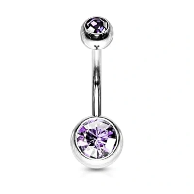 PiercedOff 316L Surgical Steel Belly Bar with Externally Threaded Double Tanzanite CZ Balls Thickness 14GA (1.6mm) / Length 10mm Ball Sizes 5mm Top and 8mm Lower