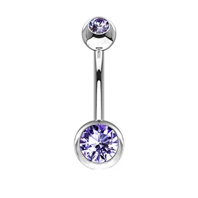 PiercedOff 316L Surgical Steel Belly Bar with Tanzanite CZ Gem Balls Thickness 14GA (1.6mm) / Length 11mm Ball Sizes 5mm Top and 8mm Bottom
