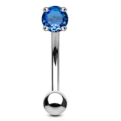 PiercedOff 316L Surgical Steel Curved Barbell with 3mm Blue CZ Balls Thickness 16GA (1.2mm) / Length 8mm Ball Size