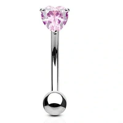 PiercedOff 316L Surgical Steel Curved Barbell with Externally Threadead 3mm Heart Shaped Pink CZ Ball Thickness 16GA (1.2mm) / Length 8mm Size
