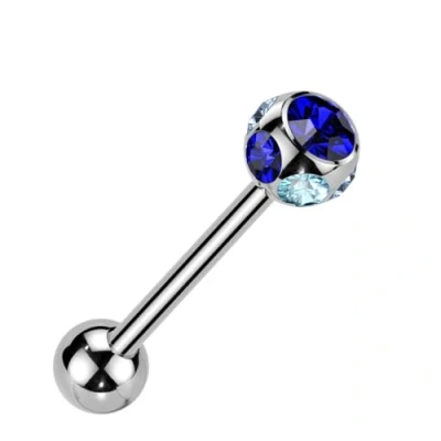PiercedOff 316L Surgical Steel Externally Threaded Tongue Bar with 7 Blue CZ Gems Ball Thickness 14GA(1.6mm) / Length 16mm Size 5mm Gem 6mm