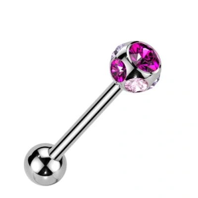 PiercedOff 316L Surgical Steel Externally Threaded Tongue Bar with 7 Pink CZ Gems Ball Thickness 14GA(1.6mm) / Length 16mm Size 5mm Gem 6mm