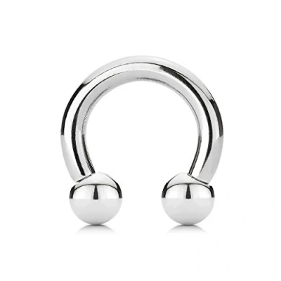 The horseshoe thickness is 2mm (This is thicker than the standard sizes and are for piercings that have been stretched) The horseshoe ring size is 16mm The balls on this horseshoe are 6mm in size. The horseshoe is externally threaded and the balls can be unscrewed at both ends The horseshoe is manufactured from surgical stainless steel so will not rust, corrode or stain. This jewellery is best for healed piercings. Surgical stainless steel contains traces of nickel so may not be suitable for those with a nickel allergies These horseshoes are sold individually