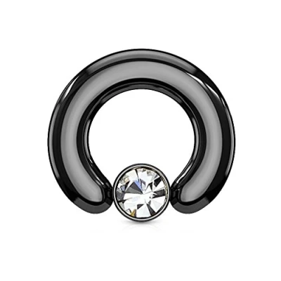 PiercedOff 316L Surgical Steel IP Black Large Gauge BCR with Round Clear Crystal Set in Flat Cylinder Thickness 4GA (5mm) / Diameter 14mm Ball Size 7mm