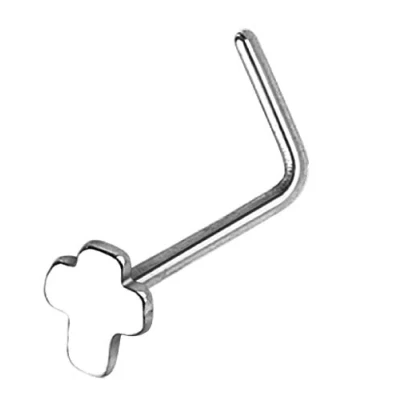 PiercedOff 316L Surgical Steel L Bend Nose Stud with Cross Head Thickness 20GA (0.8mm) / Length 6mm Size 3mm