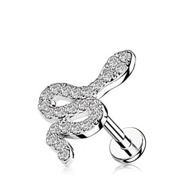 PiercedOff 316L Surgical Steel Labret with Clear CZ Paved Small Snake Length 6mm Width 1.2mm