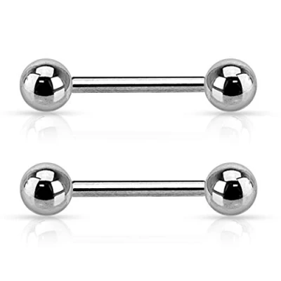 The barbells are 2.4mm (10ga) thick. This is thicker than normal barbells and is intended for use in stretched piercings The length of the barbells is 12mm The balls are externally threaded and are 5mm in size. The balls unscrew on both ends The barbells are manufactured from 316L Surgical Stainless Steel so will not rust, corrode or stain. This jewellery is best for healed piercings. Surgical Stainless Steel contains traces of nickel so may not be suitable for those with a nickel allergies Sold as a pack of 2 barbells