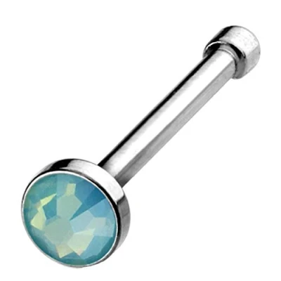 PiercedOff 316L Surgical Steel Nose Bone with Flat Green Opalite Stone Thickness 20GA (0.8mm) / Length 6mm Size 2mm