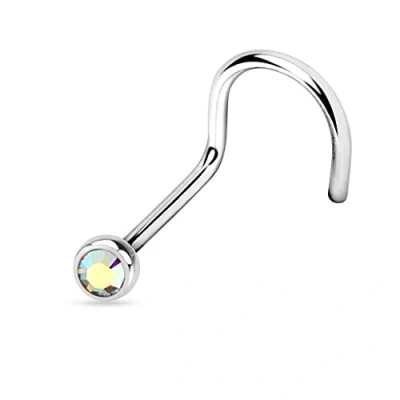 PiercedOff 316L Surgical Steel Nose Screw with Aurora Borealis CZ Gem Thickness 18GA (1mm) / Length 6mm Size 2.5mm