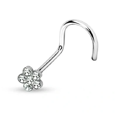 PiercedOff 316L Surgical Steel Nose Screw with Multiple Clear CZ Gems Flower Thickness 18GA (1mm) / Length 6mm Size 4mm