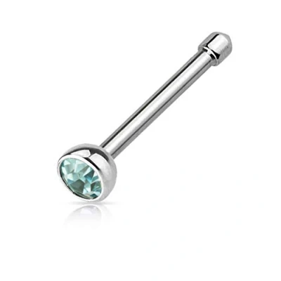 PiercedOff 316L Surgical Steel Nose Stud with Aqua CZ Gem Thickness 18GA (1mm) / Length 6mm Size 2mm
