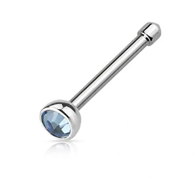 PiercedOff 316L Surgical Steel Nose Stud with Lite Blue CZ Gem Thickness 18GA (1mm) / Length 6mm Size 2mm
