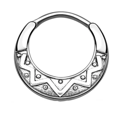 PiercedOff 316L Surgical Steel Septum Clicker Ring with Tribal Design