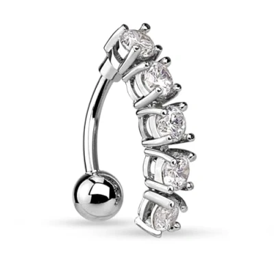 PiercedOff 316LSurgical Steel Top Down (Reverse) Belly Bar with 5 Clear CZ Dangle Thickness 14GA (1.6mm) / Length 10mm Ball Size 5mm and is 25mm x 4mm