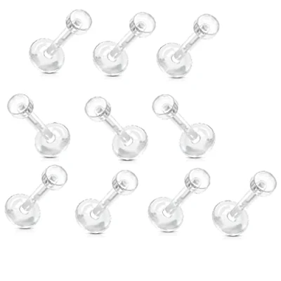 PiercedOff Bio Flex Clear Retainer with 3mm Removable Push In Top Thickness 14GA (1.6mm) / Length 8mm Pack of 10 Retainers