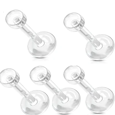 PiercedOff Bio Flex Clear Retainers with 3mm Removable Push In Top Thickness 14GA (1.6mm) / Length 14mm Pack of 5