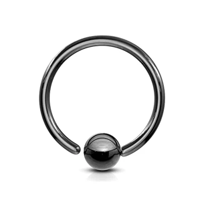 PiercedOff Black IP over 316L Surgical Steel Flexible Ring with 3mm Fixed Ball Thickness 16GA (1.2mm) / Diameter 10mm