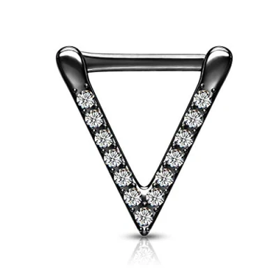 PiercedOff Black PVD 316L Surgical Steel Triangle Septum with Clear CZ Gems Thickness 1.2mm Bar Length 6mm