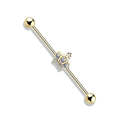 PiercedOff Gold Tone Industrial Bar with Clear CZ Paved Crown Length 38mm Thickness 1.6mm (14GA)