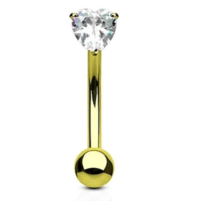 PiercedOff Gold Tone IP over 316L Surgical Steel Curved Barbell with Externally Threadead 3mm Heart Shaped Clear CZ Ball Thickness 16GA (1.2mm) / Length 8mm Size
