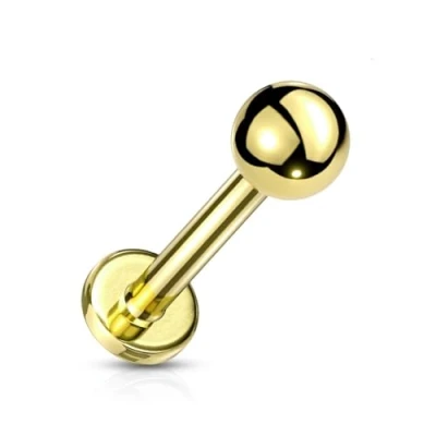 PiercedOff Gold Tone IP over 316L Surgical Steel Labret with Threadless Push in Top Ball Thickness 20GA (0.8mm) / Length 8mm Size 2mm