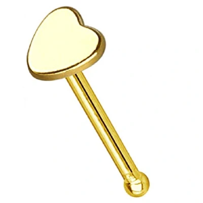 PiercedOff Gold Tone IP over 316L Surgical Steel Nose Bone Stud with Heart Head Thickness 20GA (0.8mm) / Length 6mm Size 3mm