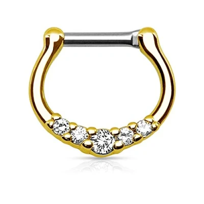 PiercedOff Gold Tone IP over 316L Surgical Steel Septum Clicker Ring with 5 Clear CZ Gems Thickness 1.2mm Length 6mm