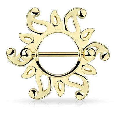 PiercedOff Gold Tone over 316L Surgical Steel Nipple Shield with Sunburst Thickness 14GA (1.6mm) / Length 19mm Ball Size 5mm