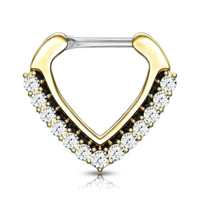 PiercedOff Gold Tone PVD 316L Surgical Steel Septum Clicker Ring with Clear CZ Gems Thickness 1.2mm Length 8mm