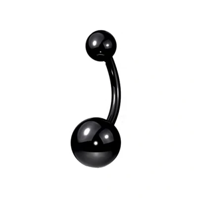 PiercedOff Implant Grade Titanium Black PVD Plated 14GA Belly Bar Thickness (1.6mm) / Length 10mm Ball Sizes 5mm Top and 8mm Lower