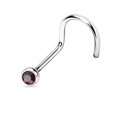 PiercedOff Implant Grade Titanium Nose Screw with Purple CZ Gem Thickness 18GA (1mm) / Length 6mm Size 2mm