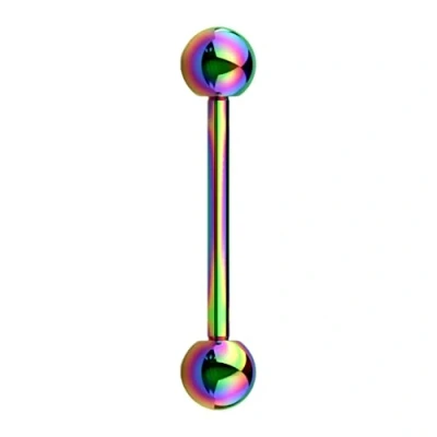 PiercedOff Implant Grade Titanium Rainbow PVD Plated Barbell with Internally Threaded Balls Thickness 14GA (1.6mm) / Length 16mm Ball Size 5mm