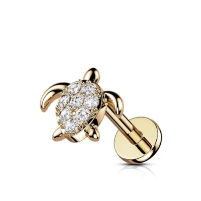 PiercedOff Rose Gold Tone 316L Surgical Steel Labret with Paved Clear CZ Turtle Length 8mm Width 1.2mm
