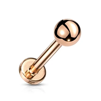 PiercedOff Rose Gold Tone IP over 316L Surgical Steel Labret with Threadless Push in Top Ball Thickness 20GA (0.8mm) / Length 6mm Size 2mm