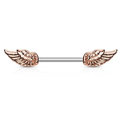 PiercedOff Rose Gold Tone IP over 316L Surgical Steel Nipple Bar with Angel Wing Ends Thickness 14GA (1.6mm) / Length 14mm Size 12mm x 6mm