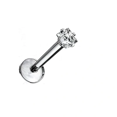 PiercedOff Titanium 16GA (1.2mm) Labret with Internally Threaded Clear Square CZ Gem Thickness / Length 6mm Ball Size 2mm