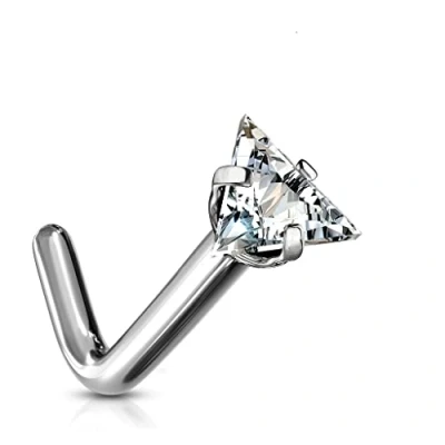 PiercedOff Titanium 20GA L Bend Nose Stud with Clear CZ Triangle Thickness (0.8mm) / Size 3mm