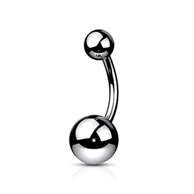 PiercedOff Titanium Belly Bar with Externally Threaded Solid Balls Thickness 16GA (1.2mm) / Length 10mm Ball Sizes 4mm Top and 6mm Lower