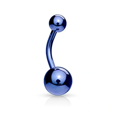 PiercedOff Titanium Blue Ion Plated over 316L Surgical Steel Belly Bar Thickness 14GA (1.6mm) / Length 10mm Ball Sizes 5mm Top and 8mm Lower