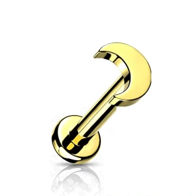 PiercedOff Titanium Gold Tone PVD Labret with Internally Threaded Crescent Moon Thickness 16GA (1.2mm) / Length 6mm Size 2.5mm x 3.5mm
