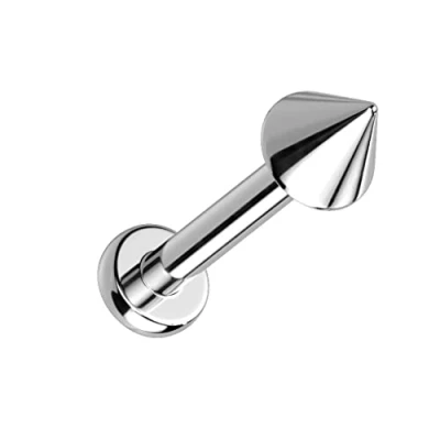 PiercedOff Titanium Labret with Externally Threaded Spike Thickness 16GA (1.2mm) / Length 10mm Size 4mmx4mm