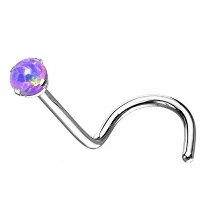 PiercedOff Titanium Nose Screw with Purplee Synthetic Opal Thickness 18GA (1mm) / Ball Size 2.5mm