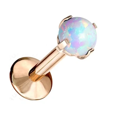 PiercedOff Titanium Rose Gold Tone Labret with Internally Threaded White Synthetic Opal Ball (Thickness 16GA (1.2mm) / Length 6mm Size 3mm)